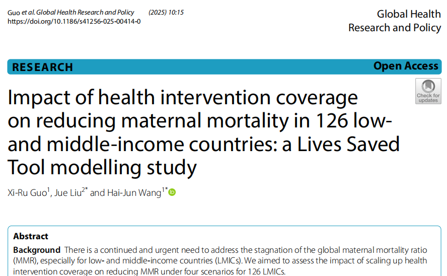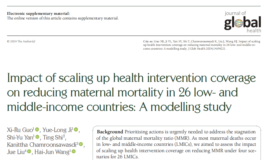 We aimed to assess the impact of scaling up health intervention coverage on reducing maternal mortality ratio(MMR) under four scenarios for 126 low- and middle-income countries (LMICs).