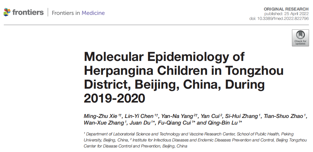The purpose of this study was to investigate the changes on the molecular epidemiology of herpangina children during 2019-2020 in Tongzhou district, Beijing, China.