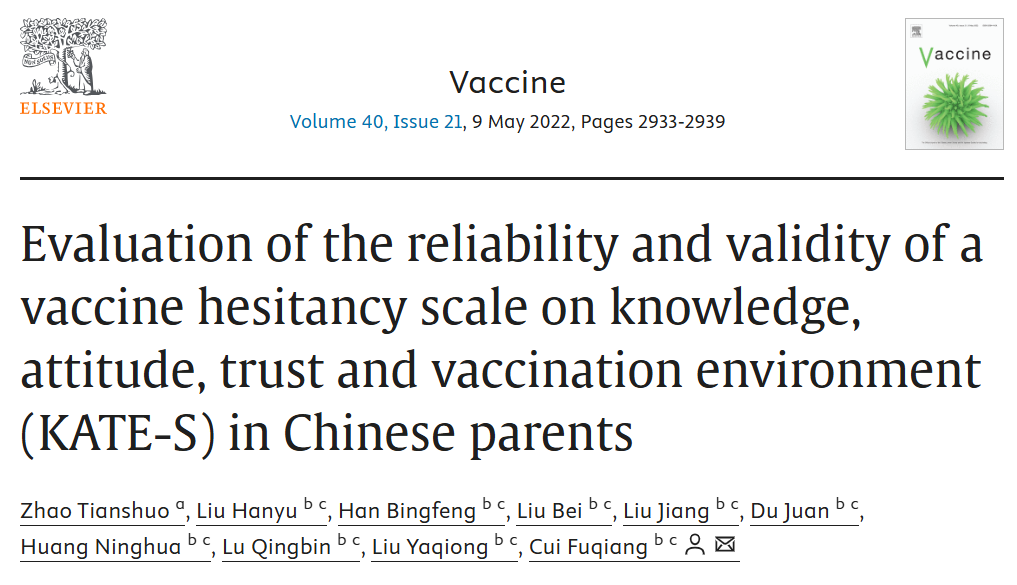 To verify the reliability and validity of a vaccine hesitancy scale about knowledge, attitude, trust and vaccination environment (KATE-S) among the Chinese parents.